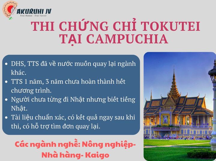 THI CHỨNG CHỈ KỸ NĂNG NGHỀ TOKUTEI GINOU - TẠI CAMPUCHIA